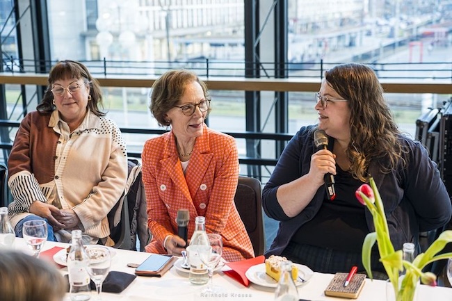 An der langen Kaffeetafel stellte sie sich den Fragen der Besucherinnen und Besucher und berichtete über ihre Arbeit am Haus. Dabei beschrieb sie unter anderem die Zusammenarbeit mit Regieteams, Künstlerinnen und Künstlern sowie mit den zahlreichen Abteilungen eines Opernbetriebs.